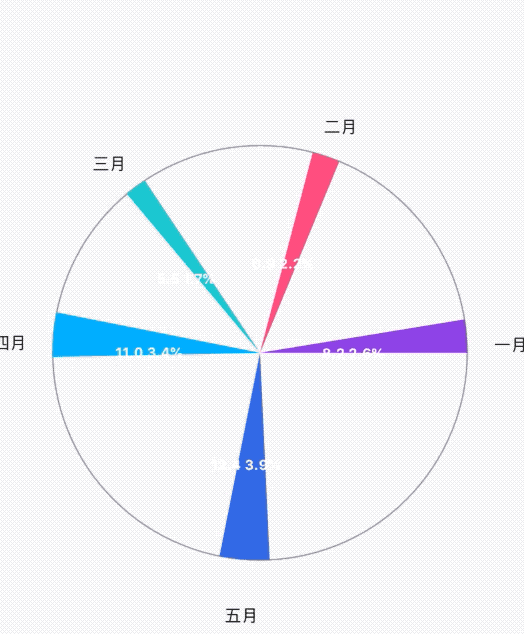 数值增长的动画效果使用一个 AnimationController 在开始动画后不断的更新绘制使用的数据,在将数据传递给 PeiChartPainter 使用即可实现。